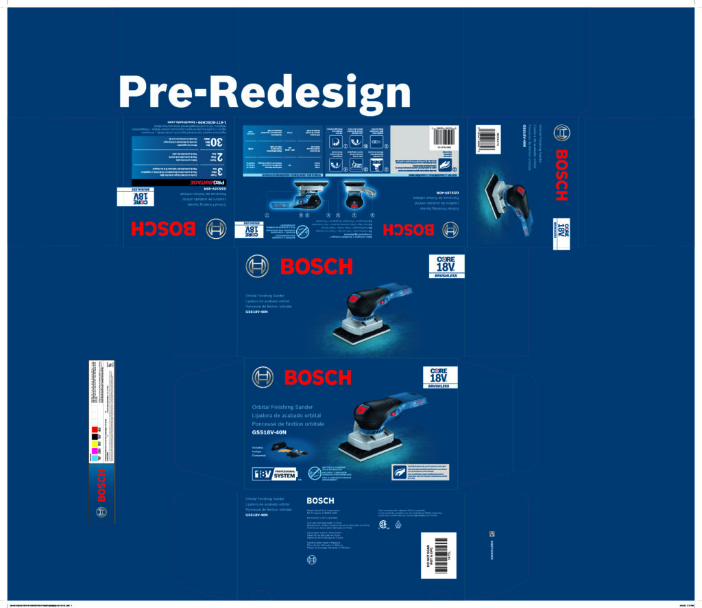As lead designer, I coordinated and delegated packaging and marketing material work across our design team, ensuring consistency in visual style and timely delivery. I structured workflows, set benchmarks, and managed deadlines. My team handled the updated box layouts for Bosch’s global line of tools, and I personally oversaw every detail—reviewing proofs and approving final files. In parallel, we produced supporting marketing assets (such as sell sheets and sticker designs) tailored to Bosch’s new visual identity, delivering polished, on-brand assets ready for production and retail.